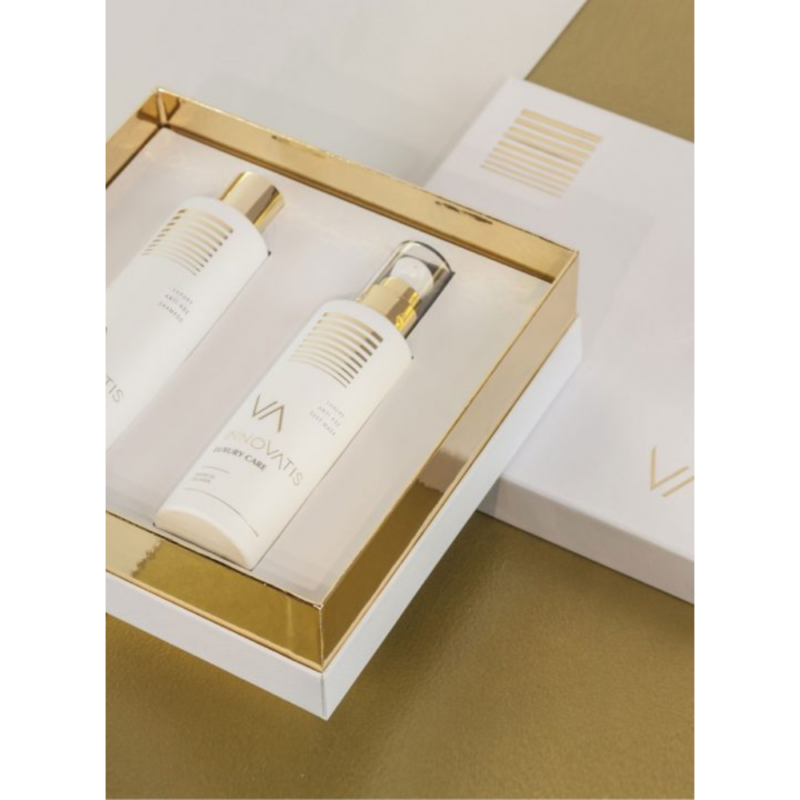 Innovatis propose des soins capillaires luxueux, comme le botox capillaire Luxury caviar Treatment, pour régénérer et sublimer les cheveux abîmés.