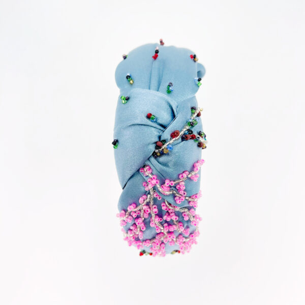 Serre-tête élégant et raffiné, en satin "blue jean délavé" et orné de perles de rocailleCHF 50.10 -
